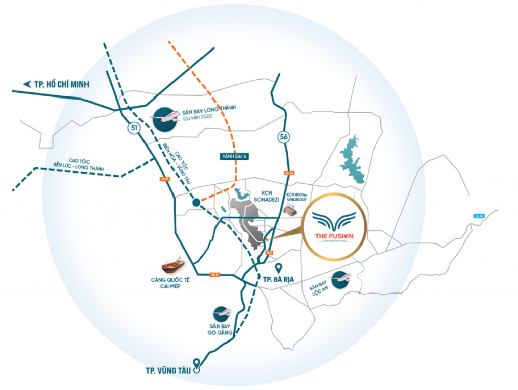 Khu đô thị The Fusion sở hữu vị trí kết nối lý tưởng, nằm ở nơi hội tụ đầy đủ các hệ thống giao thông gồm cả đường bộ, đường hàng không và đường thủy, giúp thuận lợi cho việc di chuyển cũng như vận chuyển hàng hóa.